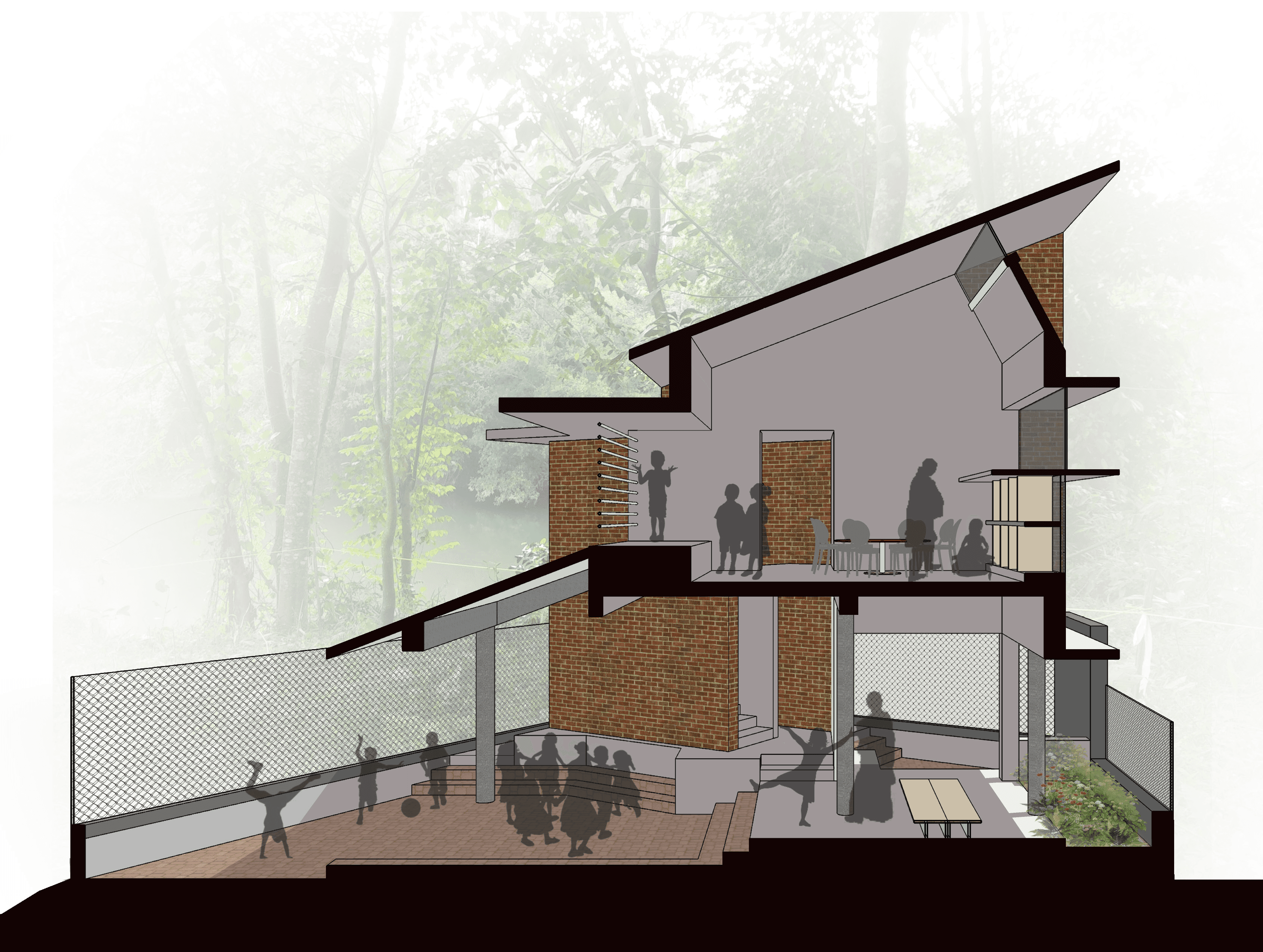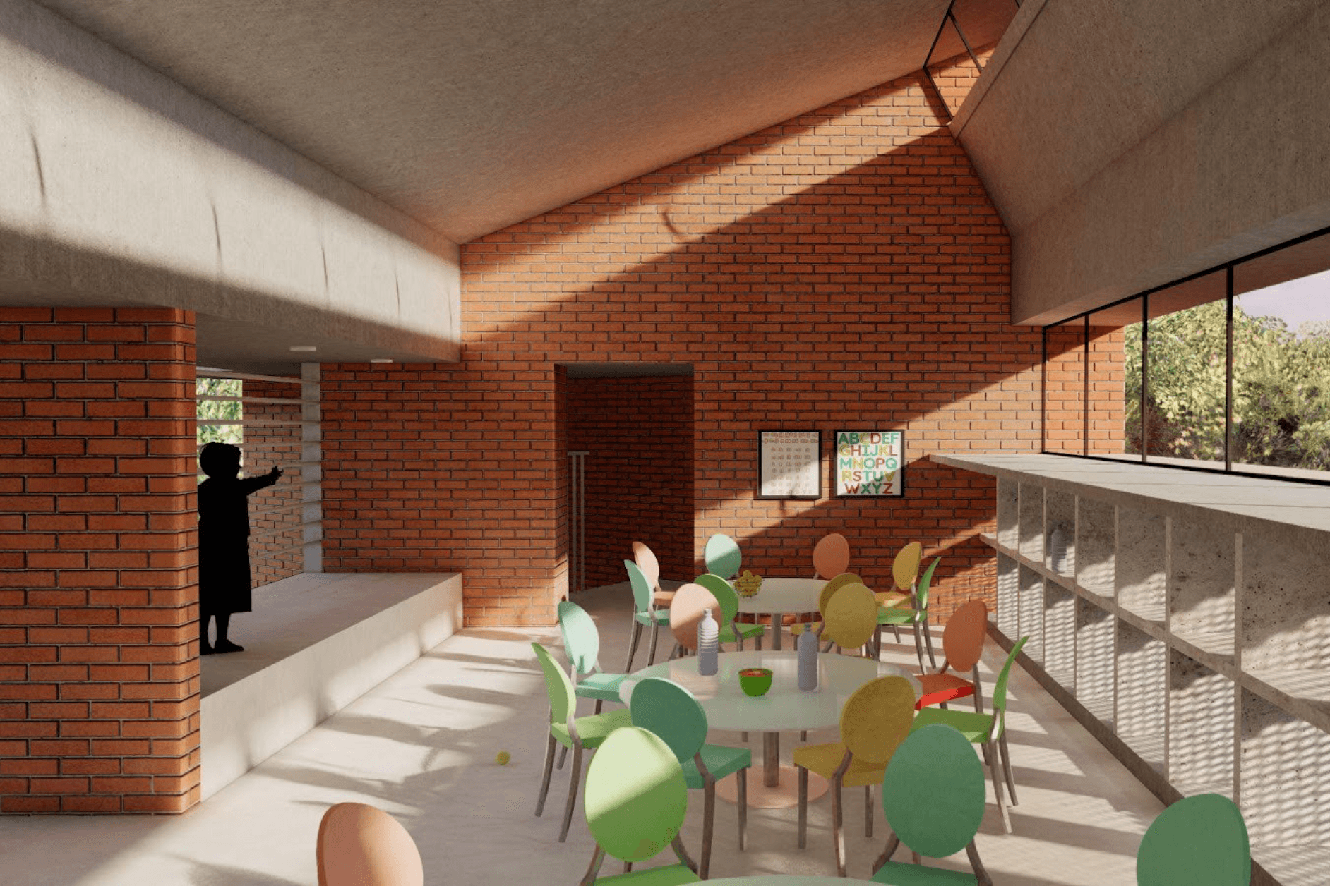 Designing an anganwadi (kindergarten) in Kerala, Inida for 20-25 kids with an office space for delivering government schemes for the community.